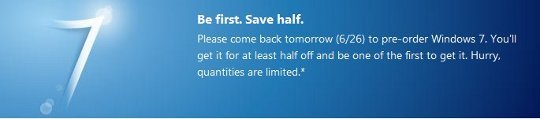 Microsoft has finalized the pricing for Windows 7 and will have a special offer starting tomorrow (6/26/2009). You can pre-order a Windows 7 Home Premium Upgrade for $49 or a Windows 7 Professional Upgrade for $99. Click on the link below to find out participating retailers.