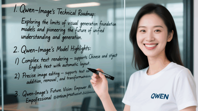 1. Qwen-Image’s Technical Roadmap: Exploring the limits of visual generation foundation models and pioneering the future of unified understanding and generation.