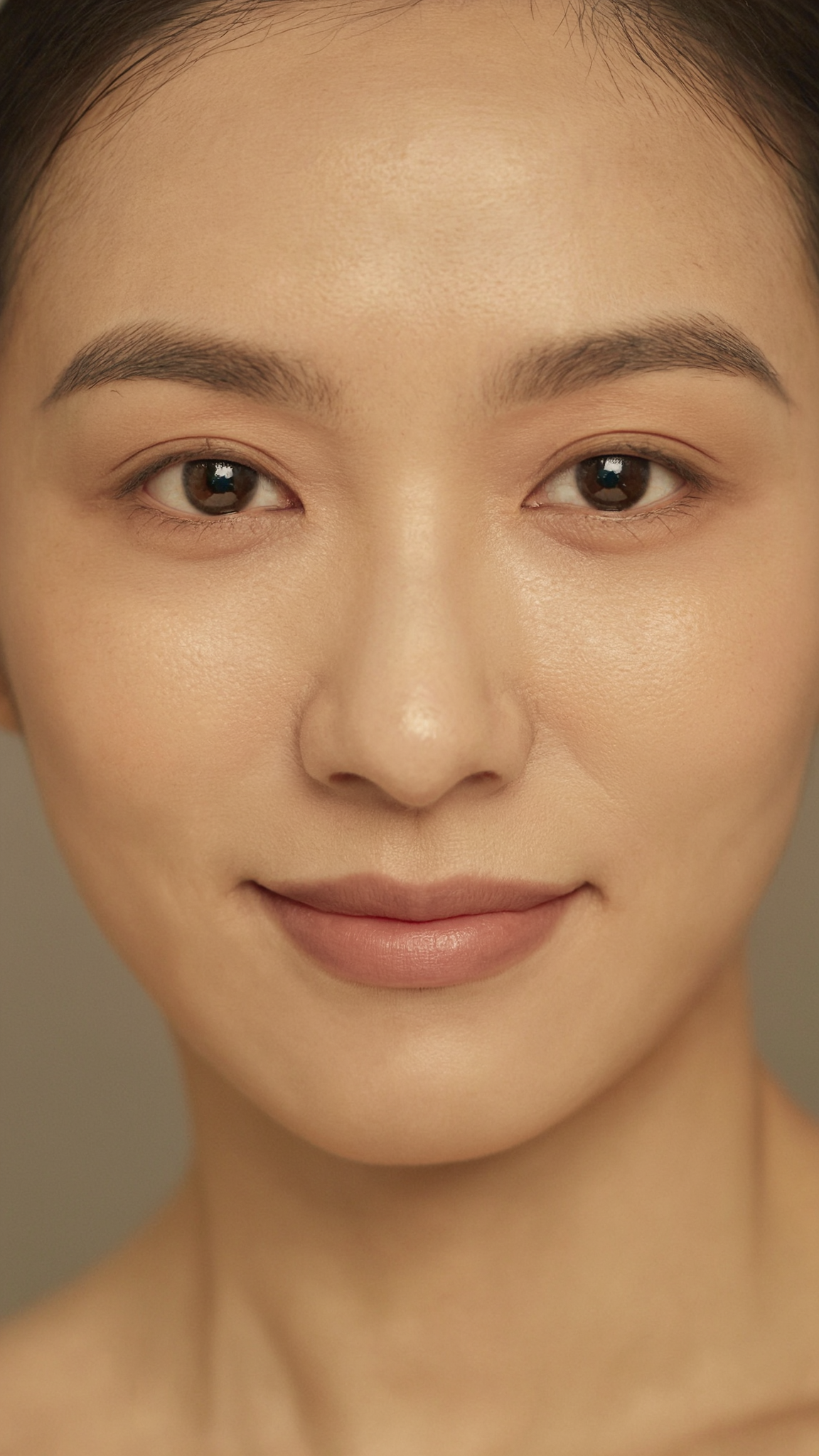 Ultra-realistic portrait of an East Asian woman with warm natural skin tone, soft diffused daylight, crisp facial details, natural pores and fine hair texture, minimal makeup, slight smile, smooth gradient background, shallow depth of field, cinematic realism, perfect color accuracy, lifelike eyes, gentle catchlights, high dynamic range, 8K photo aesthetic.